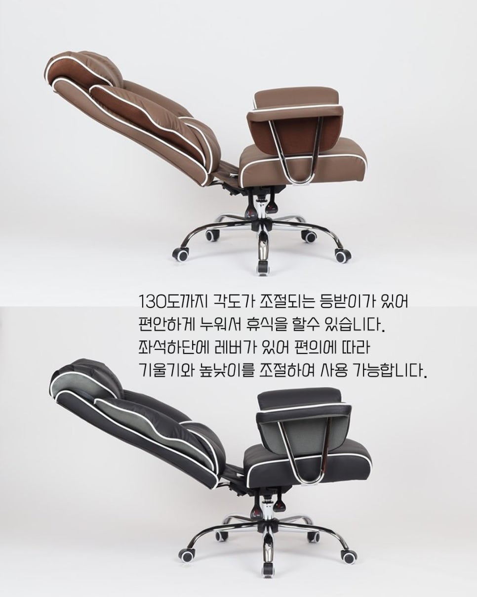 등받이는 최대 130도까지 기울기 조절이 가능하여 편안하게 기대거나 누워서 휴식을 취할 수 있습니다.
