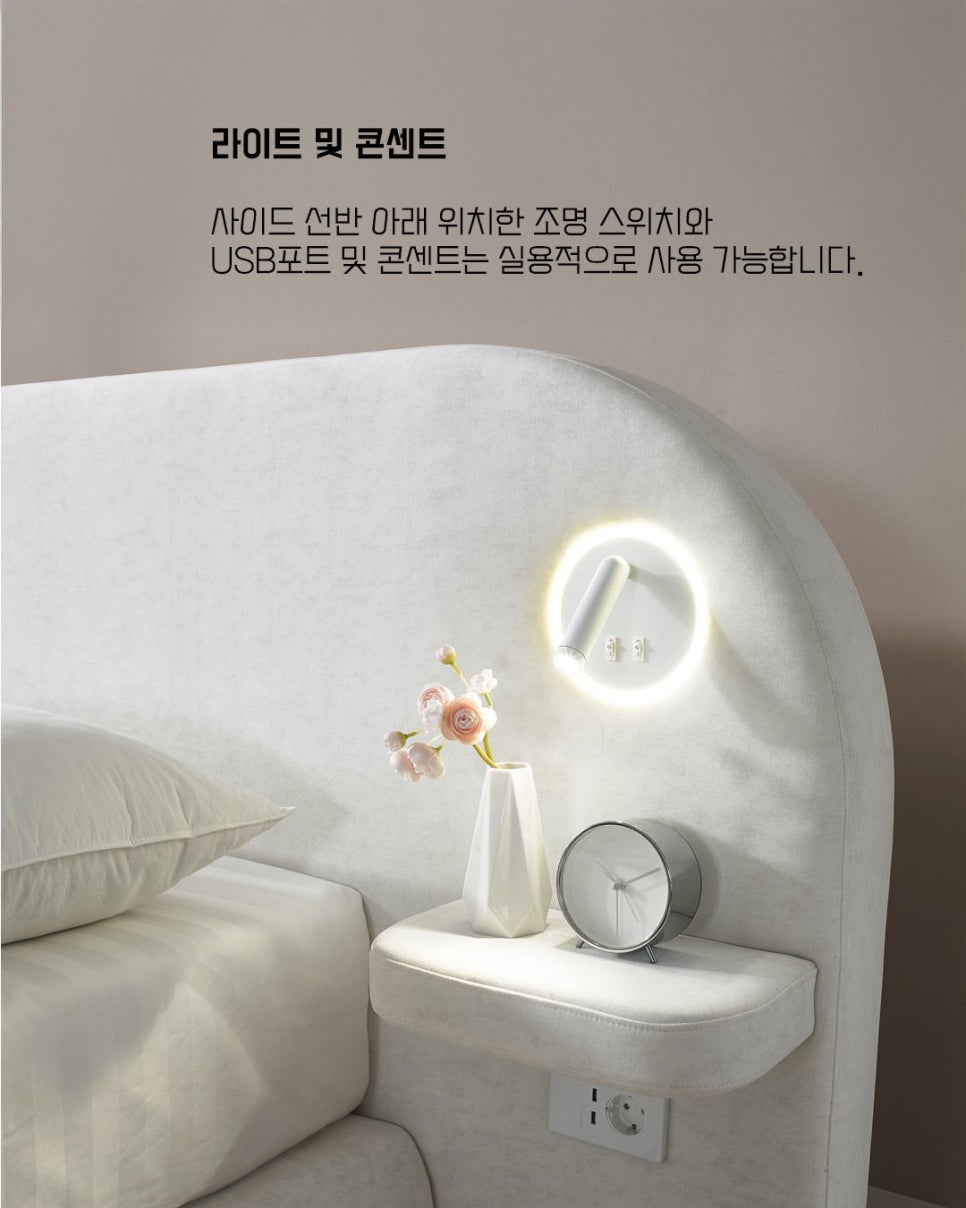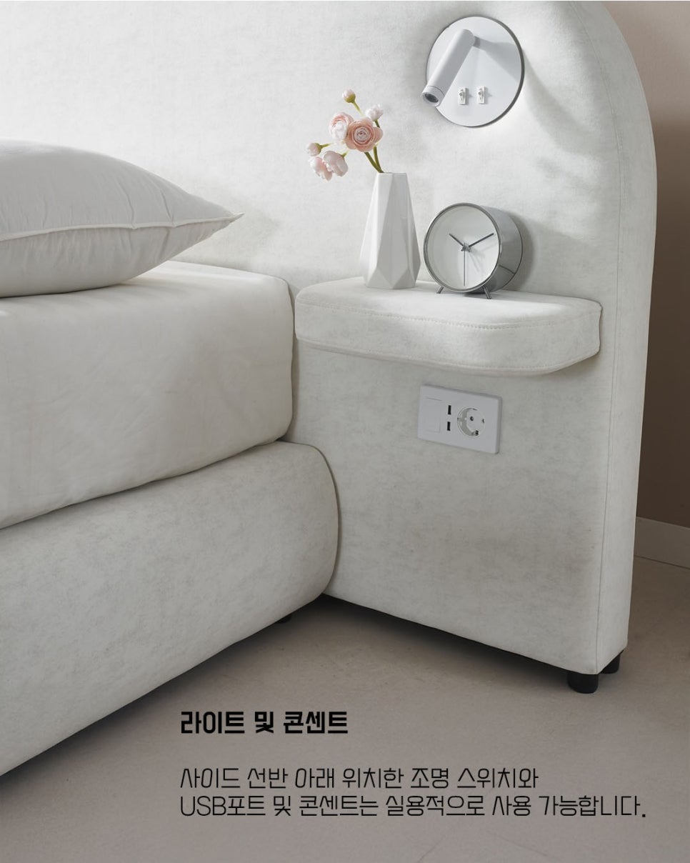 침대에서 편하게 핸드폰을 충전하거나 노트북을 사용할 수 있어 더욱 편리한 생활이 가능합니다.
