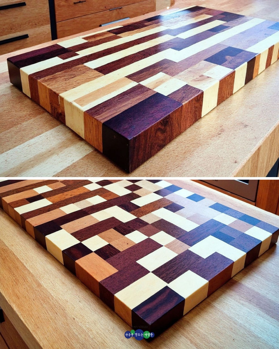 주방에 품격을 더하는 맞춤형 엔드그레인 도마 컬렉션. 고급 목재의 질감과 컬러가 살아 숨 쉬는 유니크한 키친 아트. 자연의 아름다움과 장인의 손길이 빚어낸 다양한 디자인